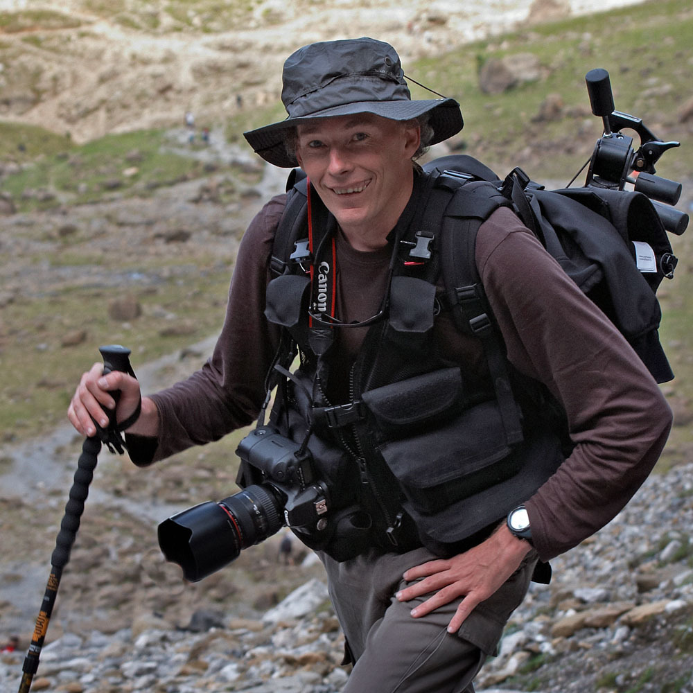 Photographe animalier, il est marqué par sa rencontre avec un gorille en 2005. De cette première expérience est née une profonde envie d’explorer leur univers si particulier à la fois proche et lointain. Très tôt il choisit le noir et blanc et le portrait pour témoigner de ces rencontres. D’abord en France puis en Europe, il multiplie les voyages auprès de ces animaux et cherche inlassablement à capturer cette étincelle d’humanité au travers d’une attitude ou d’un geste. C’est à partir de 2009 qu’il commence à partir régulièrement à la rencontre des gorilles sauvages en Afrique, au Rwanda d’abord puis en République Démocratique du Congo ces dernières années.