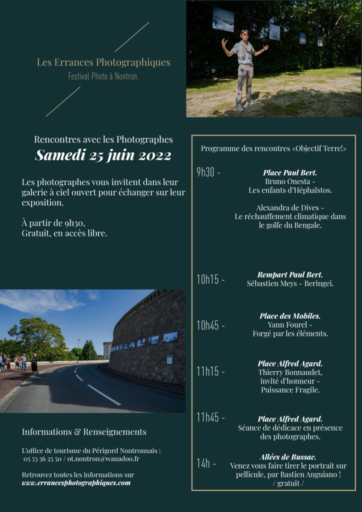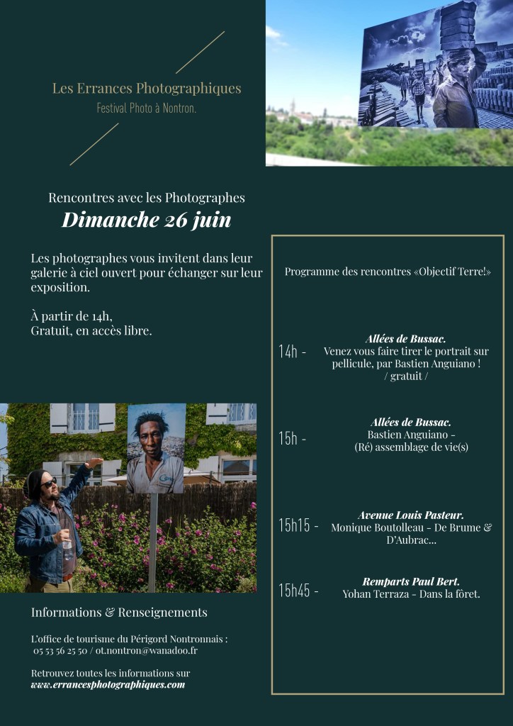 Le festival Errances Photographiques se veut comme un temps fort dans les rues de Nontron, pour créer, partager & participer à la dynamique culturelle de ce territoire rural. Nous vous proposons un grand week-end inaugural le 25 et 26 juin prochain.