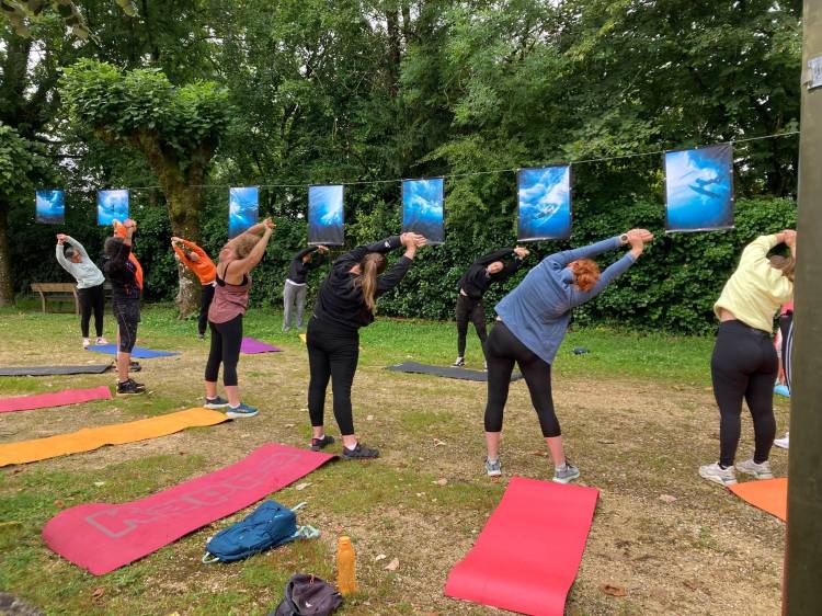 Toujours dans le cadre de ce vernissage sportif, Anaïs de Powerfit Coaching a donné un cours de renforcement musculaire gratuitement pour tous et toutes, le dimanche matin aux allées de Bussac. Que de couleurs !